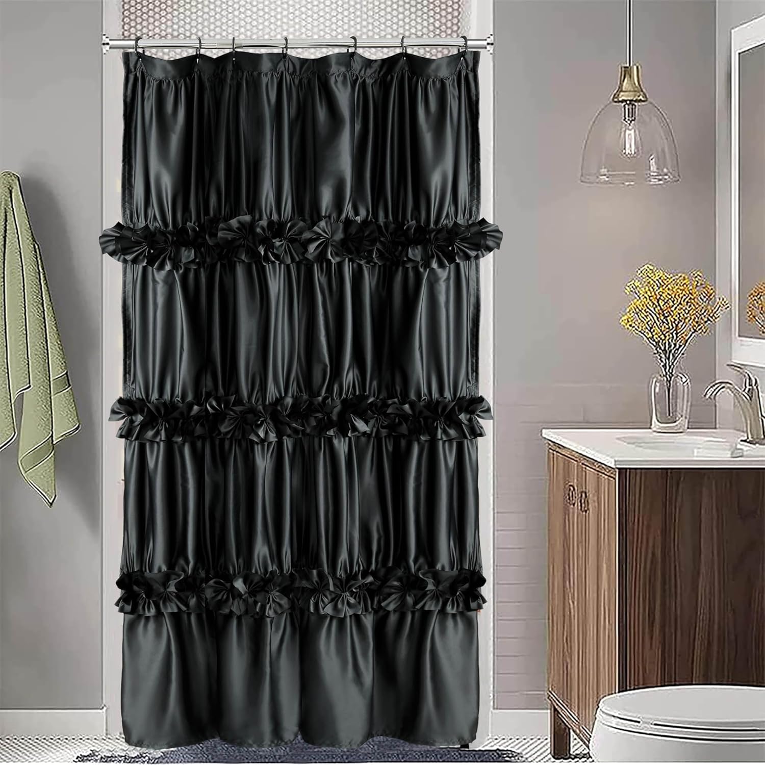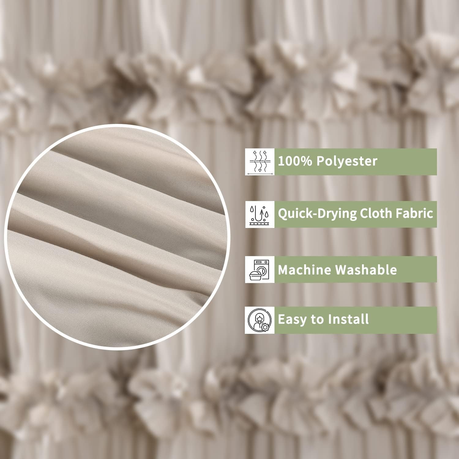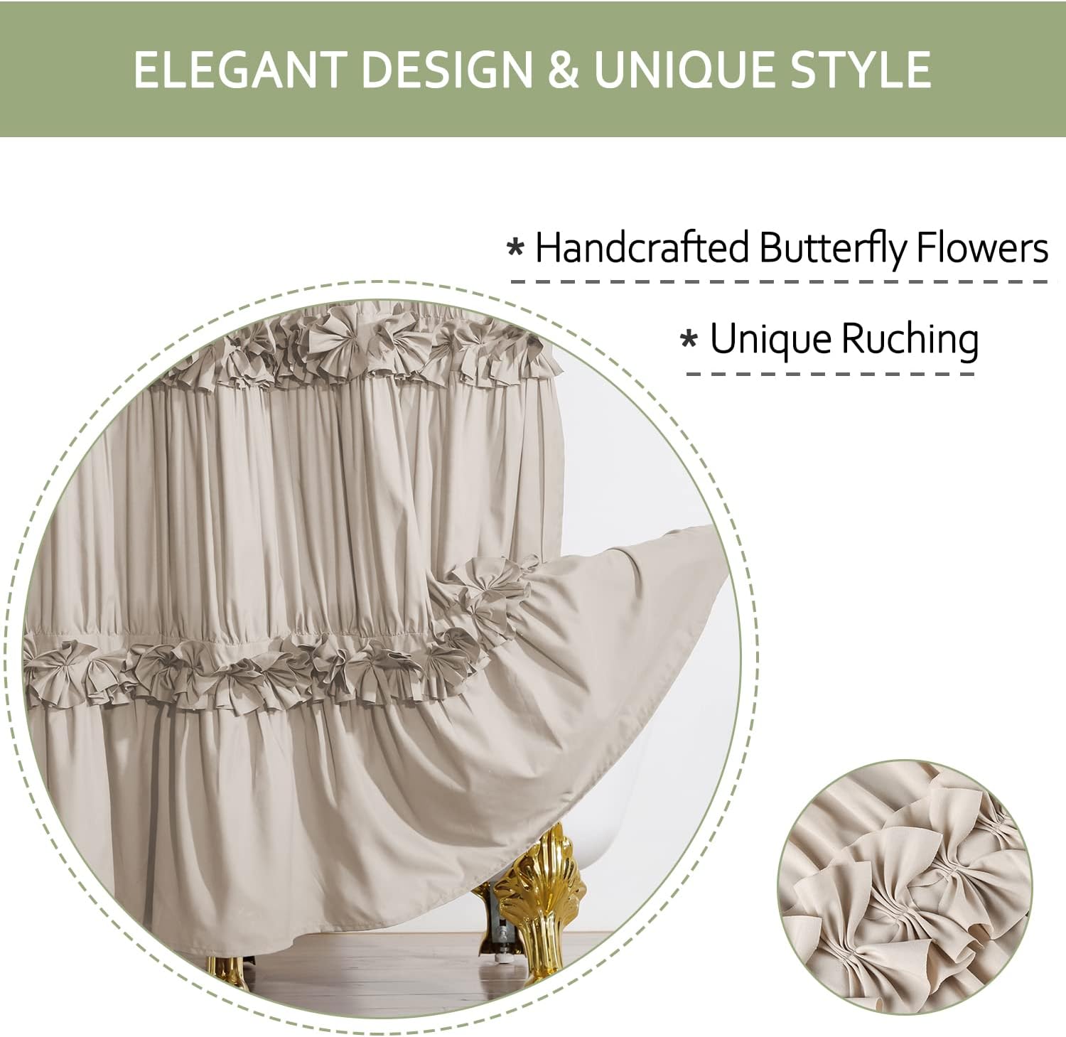 Camel Ruffle Shower Curtain, Vintage Handcrafted Bow Tie Ruched Microfiber Bath Curtain for Master Bathroom with 12 Buttonholes, 72" W x 72" H (LQ-10)
