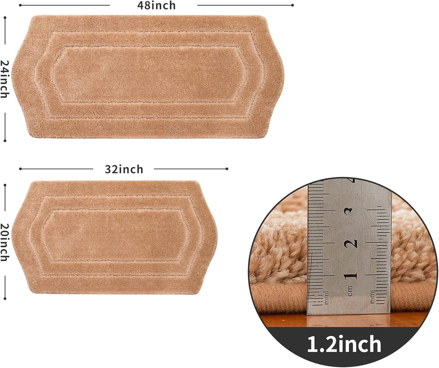 COSY HOMEER Extra Thick Bath Linen Sets Rugs for Bathroom - Anti-Slip Bath Mats Soft Plush 100% Strong Polyester Living Room Bedroom Water Absorbent(Beige,20x32+24x48 -Inches)