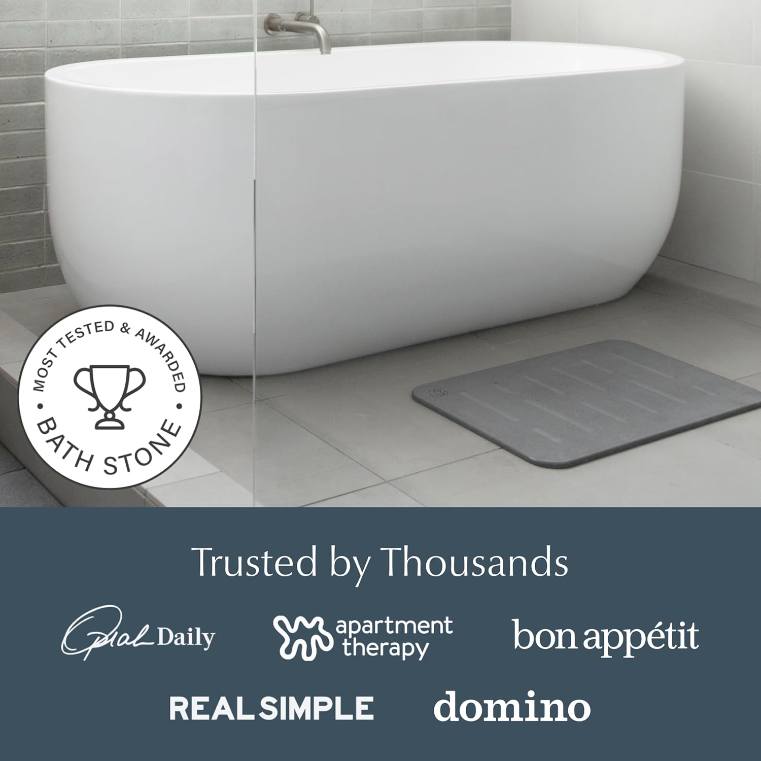 Dorai Home Bath Stone – Luxury Quick-Drying Stone Bath Mat, Non-Slip Surface, Rubberized Bottom Pad, Rain Slate