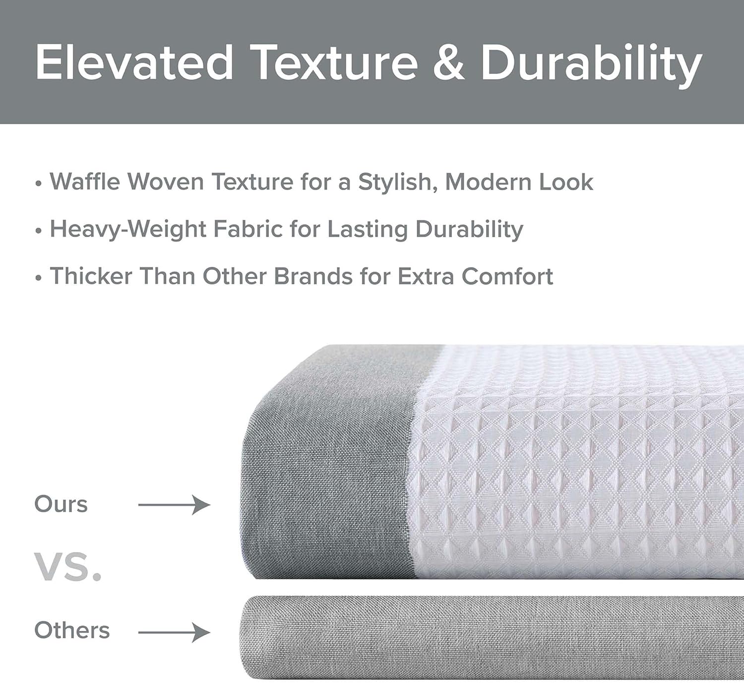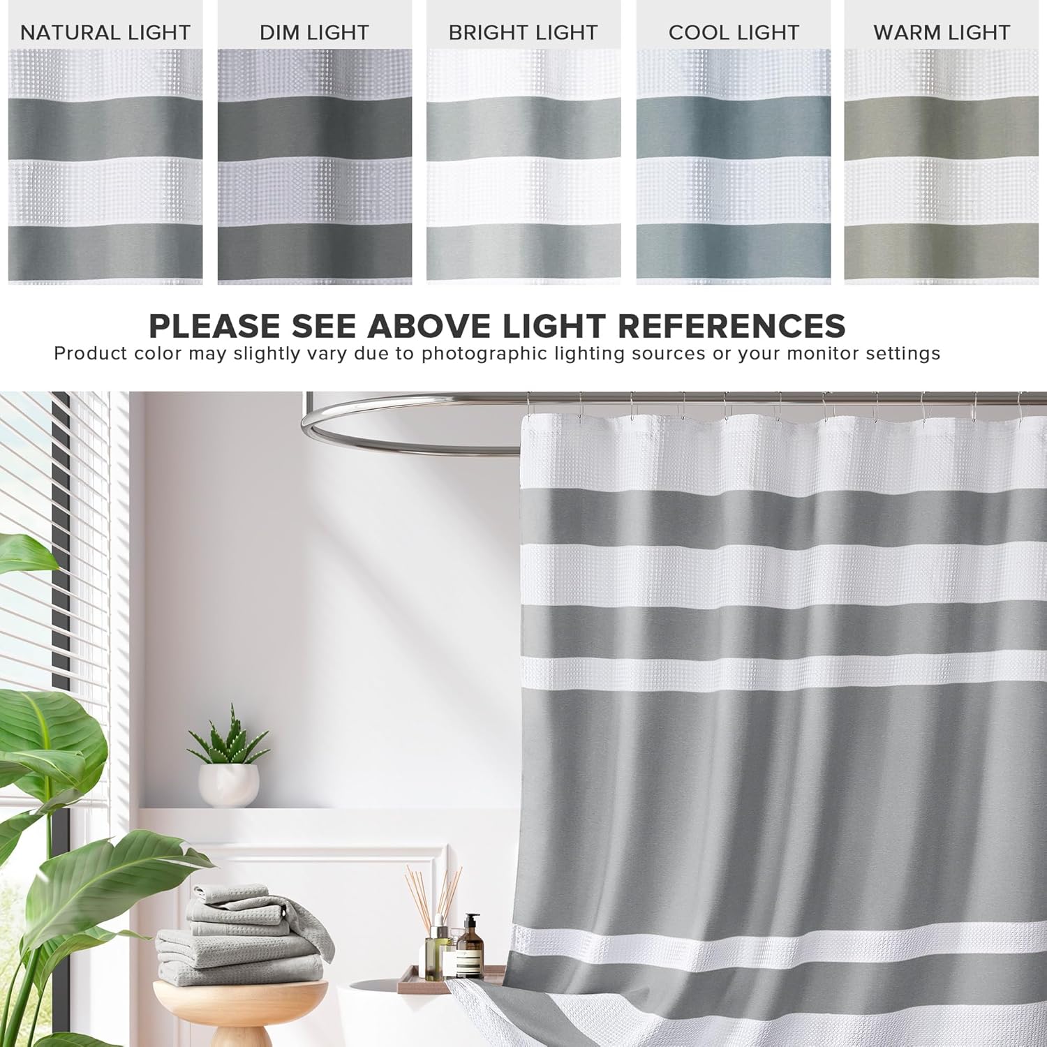 Madison Park Shower Curtain Waffle Weave Striped Pieced Design Fabric Shower Curtains for Bathroom with 3M Scotchgard Moisture Management Premium Spa Quality Modern Standard 72"x72" Grey